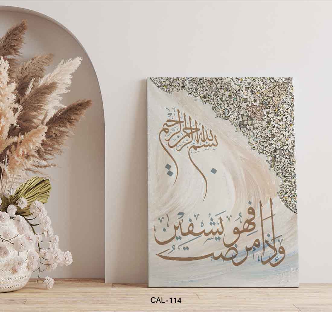 ALIPRINT tableaux calligraphie islamique en algerie Tableau de calligraphie islamique élégante avec motifs floraux détaillés et texte arabe, idéal pour décoration.