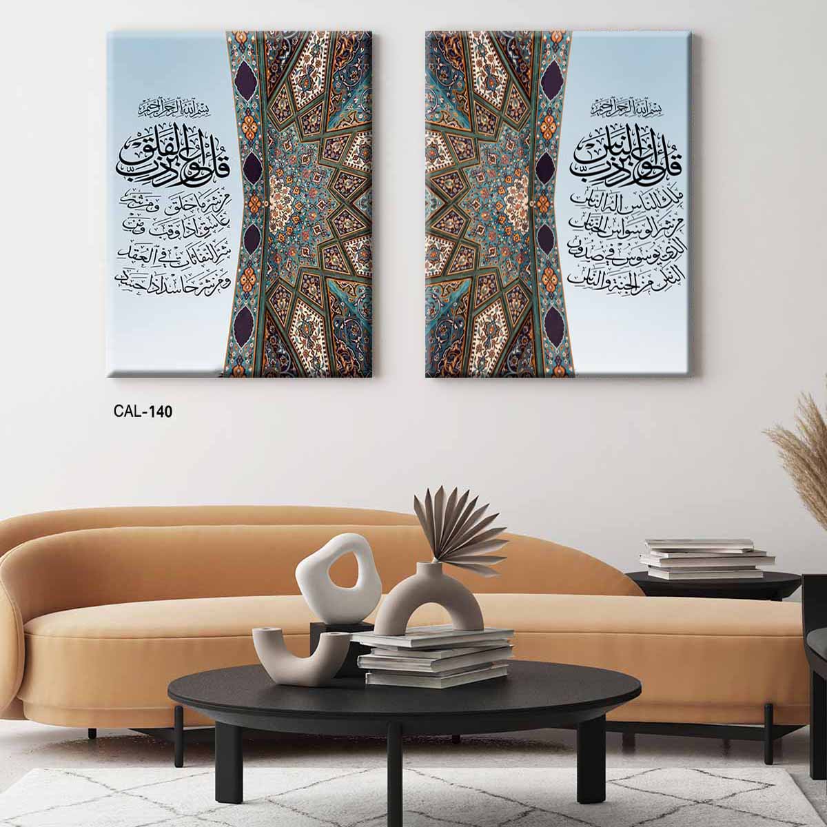 ALIPRINT tableaux calligraphie islamique en algerie Tableaux de calligraphie islamique avec motifs géométriques colorés, idéal pour décoration intérieure moderne.