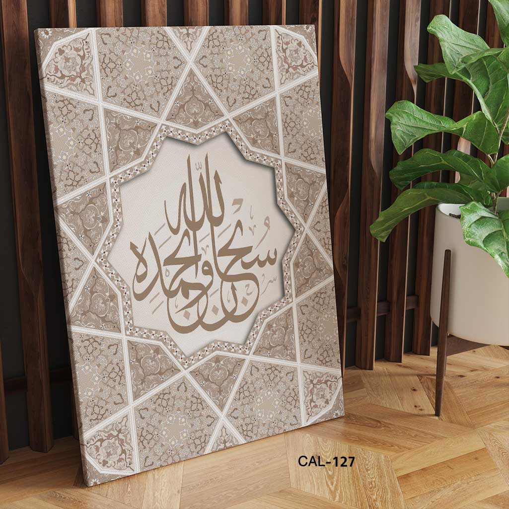 ALIPRINT tableaux calligraphie islamique en algerie Tableau de calligraphie islamique élégante sur toile, ornée de motifs géométriques et arabesques raffinées.