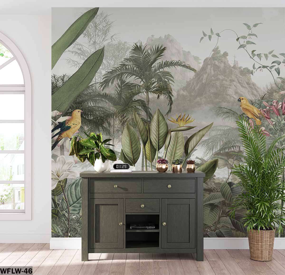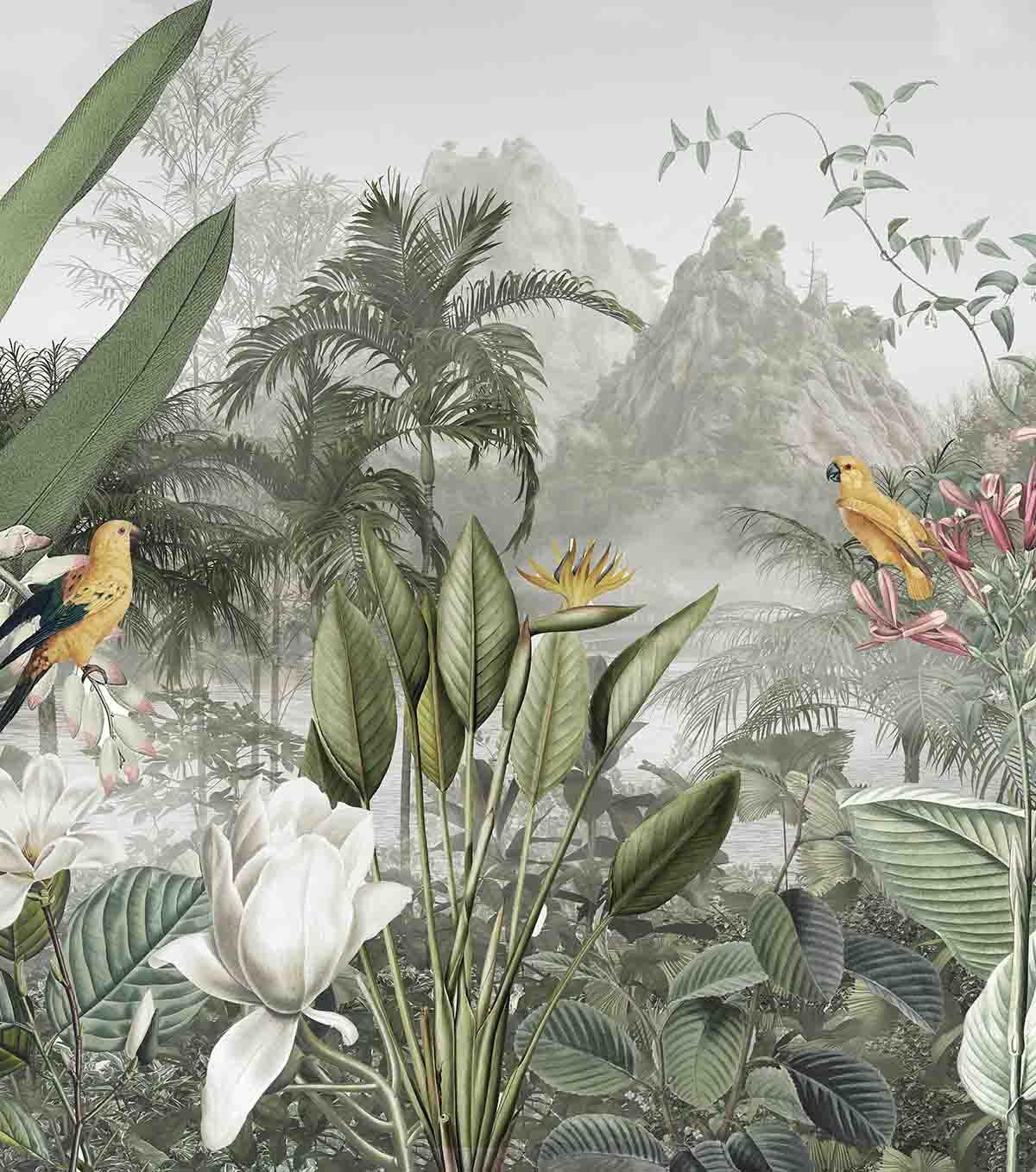 ALIPRINT papier peint décoratif mural en algerie Découvrez ce papier peint décoratif mural en Algérie. Motifs jungle luxuriante avec des oiseaux exotiques. Créez une ambiance tropicale unique avec ce revêtement mural.