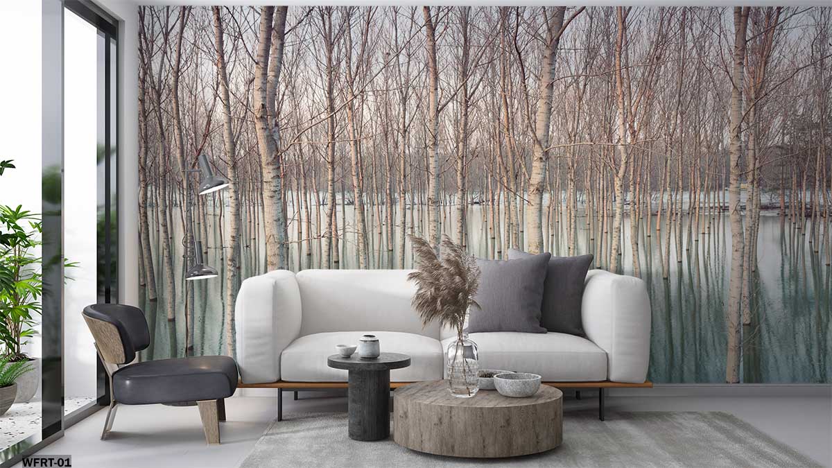 papier peint mural forêt naturelle avec des bouleaux, design moderne pour décoration intérieure en Algérie – Aliprintdz