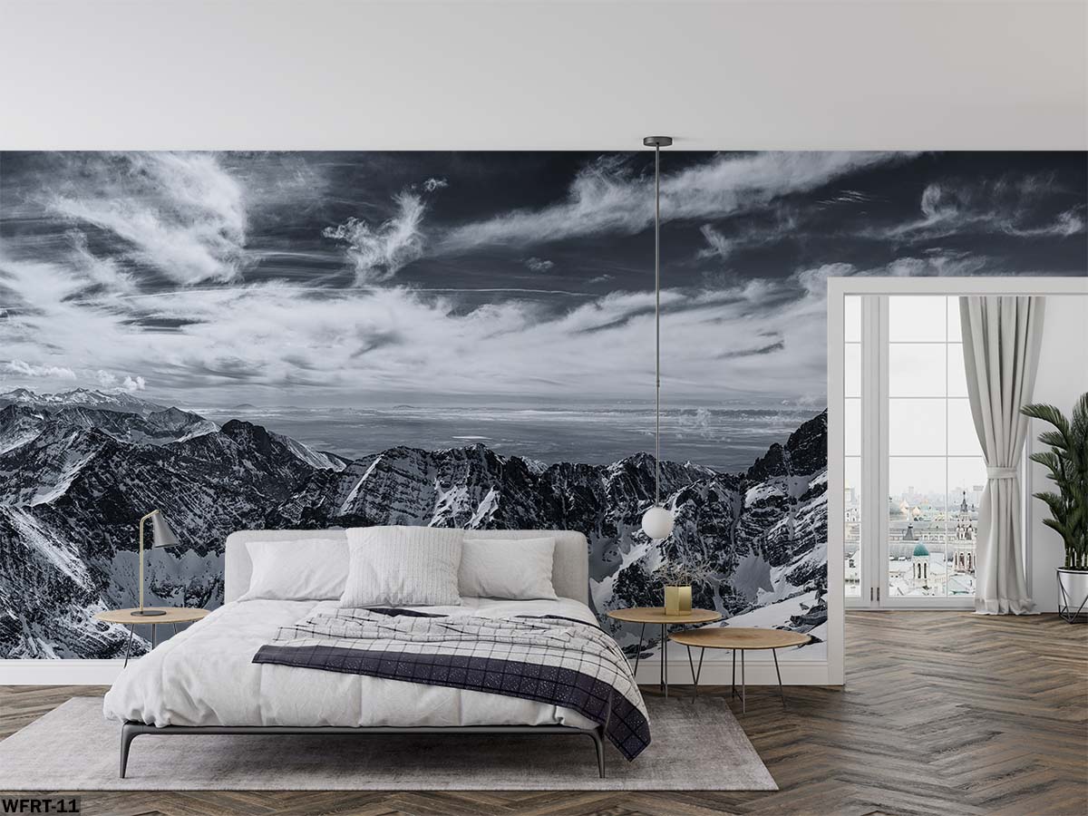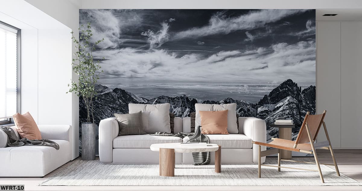 • ALIPRINT Papier peint design noir et blanc avec motifs abstraits, moderne, dans une chambre élégante. Idéal pour une décoration intérieure contemporaine. Algerie WGMT-02