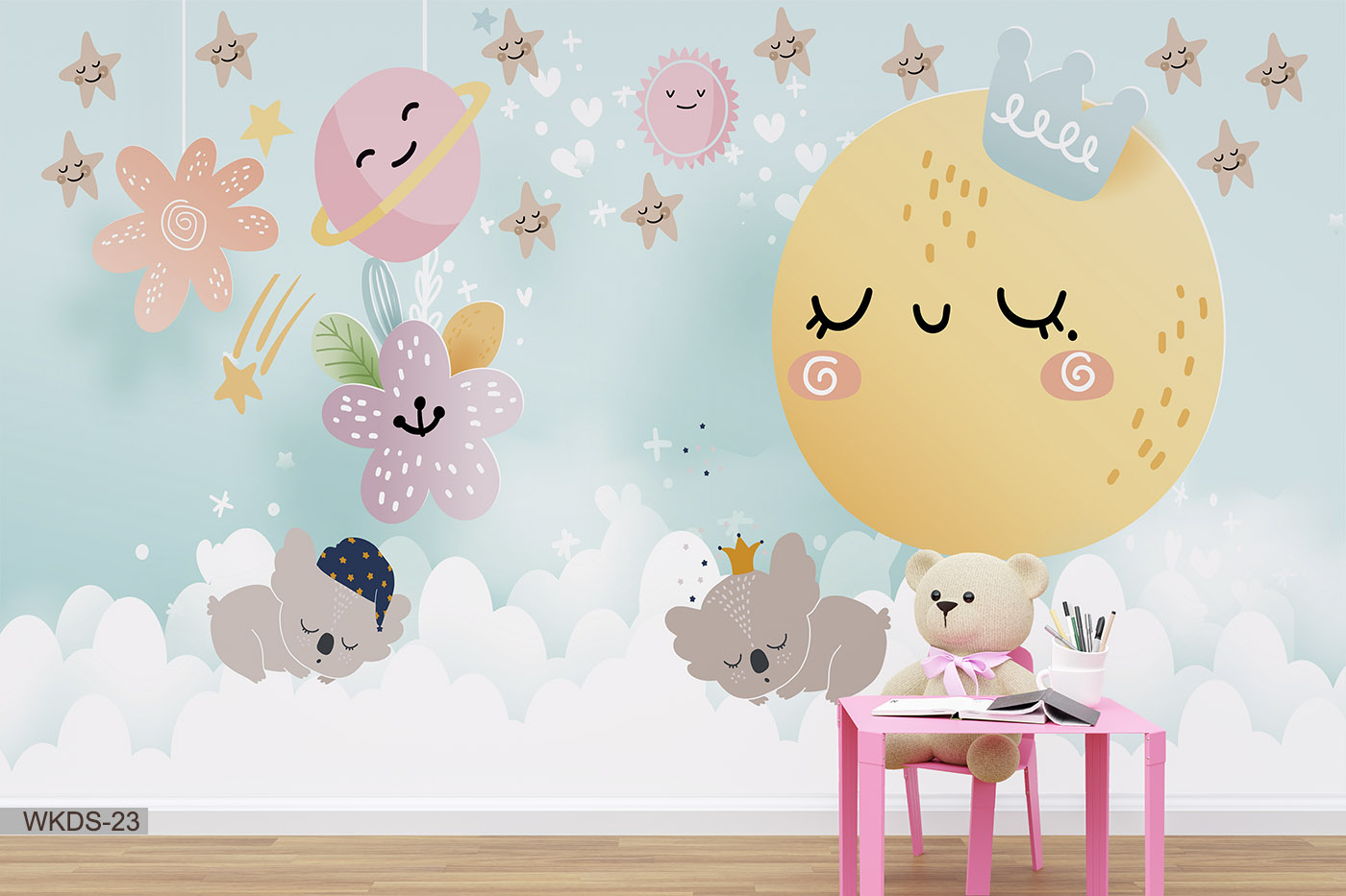 ALIPRINT papier peint décoratif mural algerie Tableau décoratif mural chambre enfant Algérie : Koalas, lune souriante, étoiles. Papier peint design original pour une décoration murale unique. papier peint décoratif mural algerie