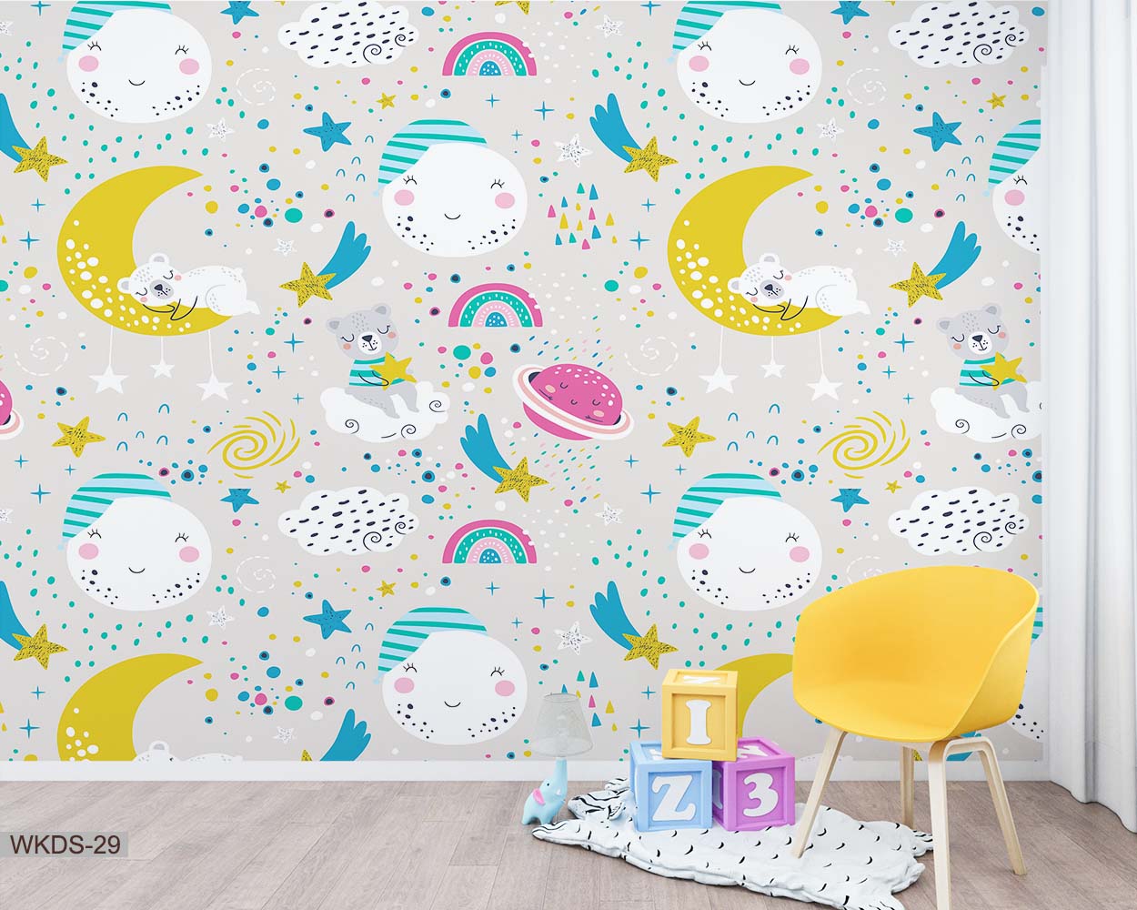 ALIPRINT papier peint décoratif mural algerie Tableau décoratif mural pour chambre d'enfant en Algérie. Papier peint avec lune, étoiles, oursons. Décoration murale enfantine originale et tendance. Idéal pour une chambre bébé. papier peint décoratif mural algerie