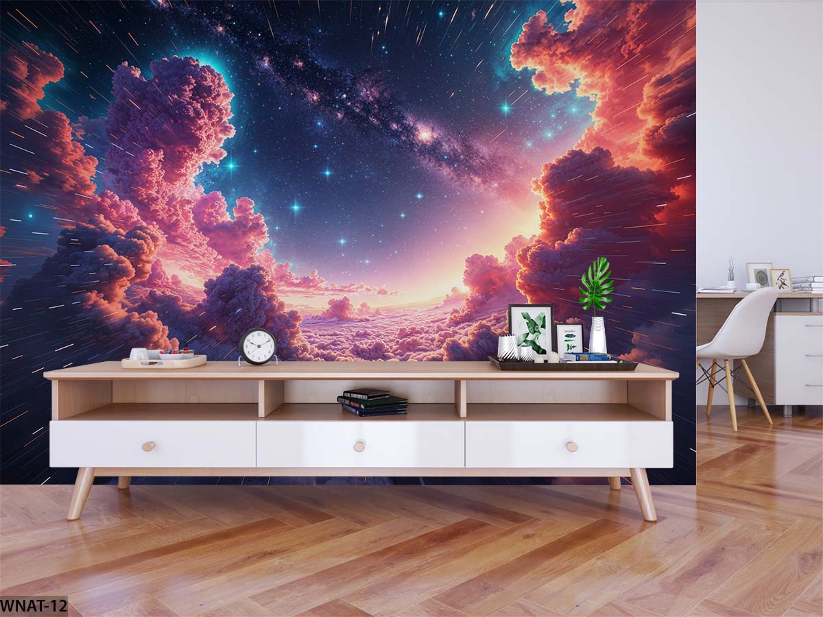 ALIPRINT Papier peint paysage céleste coloré avec des nuages lumineux et étoiles, idéal pour décoration murale d'intérieur moderne et inspirante. Algerie